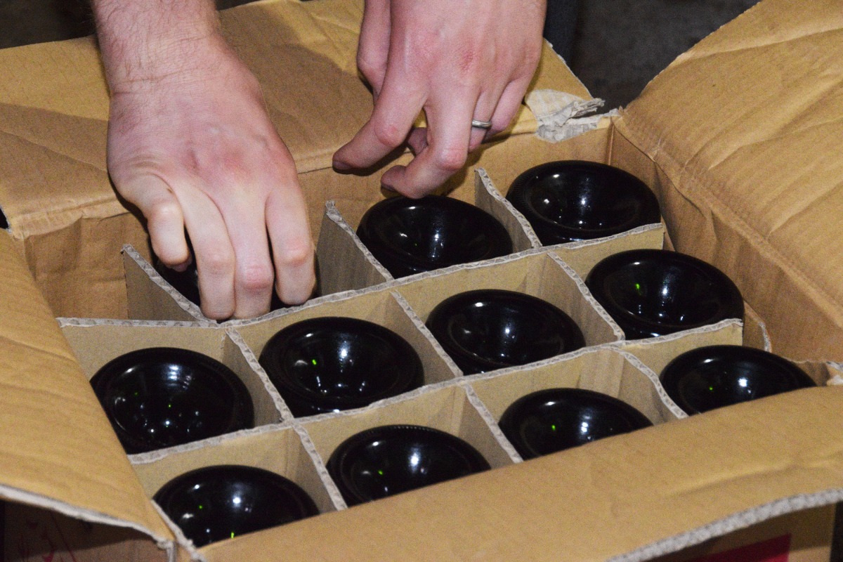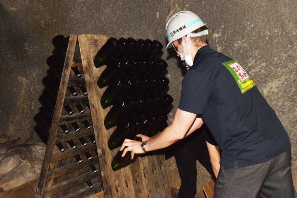 「瓶を逆さの状態で熟成させていたのですが、逆さのまま持ち帰らないといけないんです。ビン口にたまった澱(おり)が底に行ってしまうと、またやり直しになるので忘れないようにしないと。」