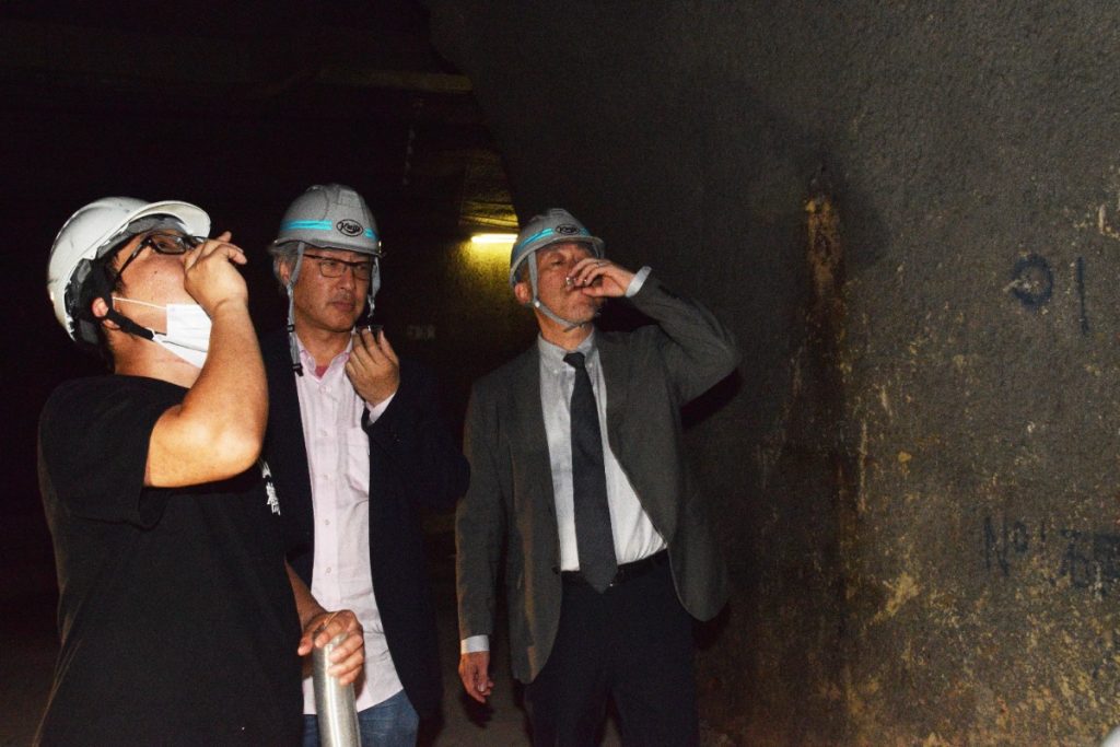 純米大吟醸「黒」と純米酒「神亀之黄金酒 長屋王」を熟成させていて、トンネル内で実際に味見を行ったのだが、関係者のみなさん納得の表情。