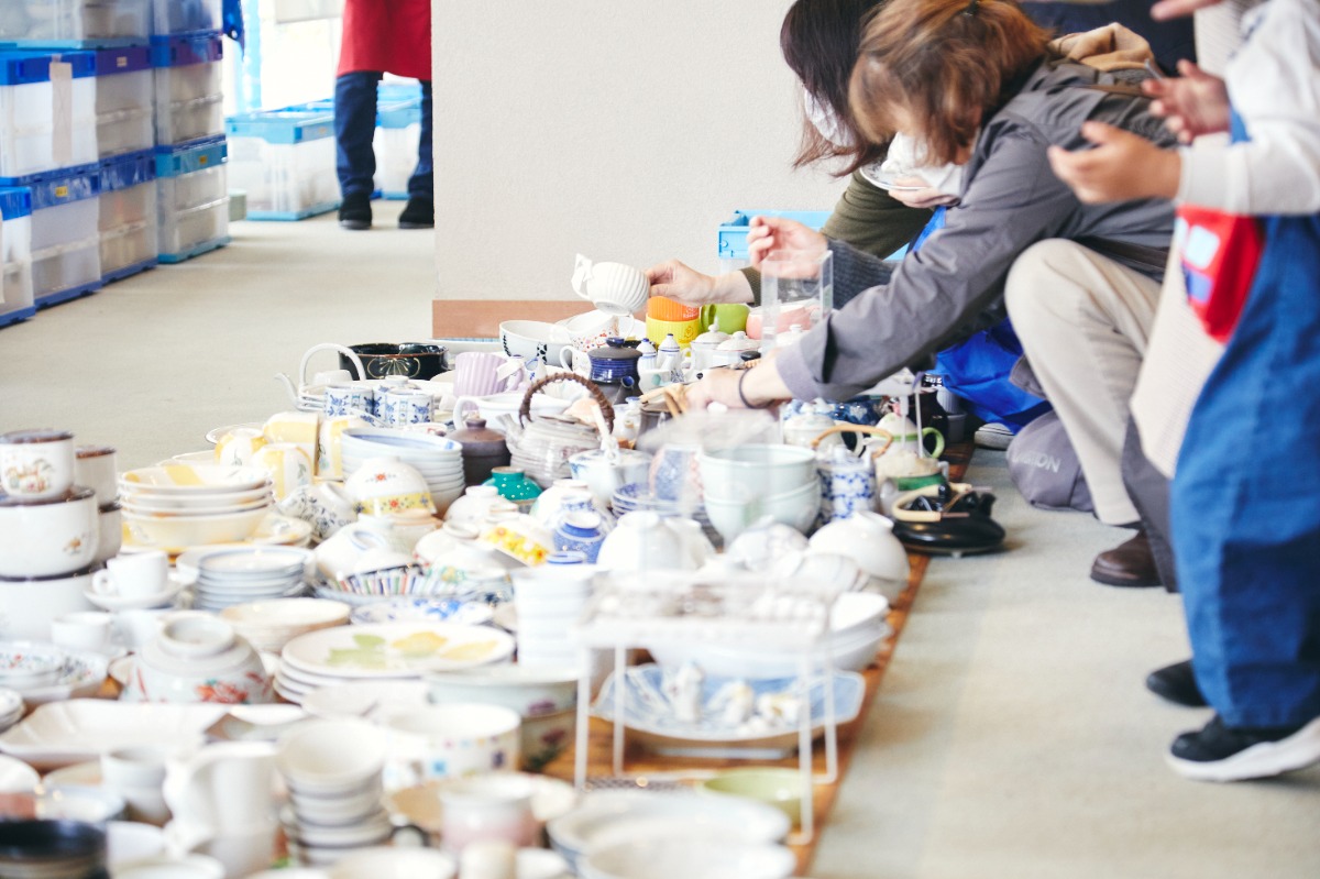 10年以上行政と協働して、陶磁器やガラス製食器のリサイクル事業を実施しており、イベントなどではリユース市として、市で回収した再度使用できるものを販売しています。