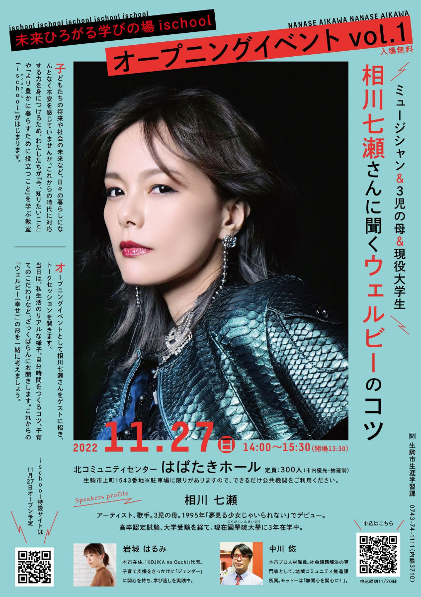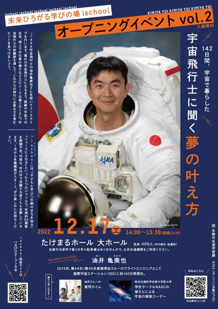 相川七瀬さんや宇宙飛行士が登壇!未来ひろがる学びの場「ischool」が始まります【生駒市】