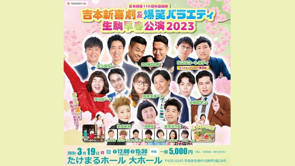 3月19日(日)たけまるホールにて「吉本新喜劇&爆笑バラエティ生駒早春公演2023」が開催!