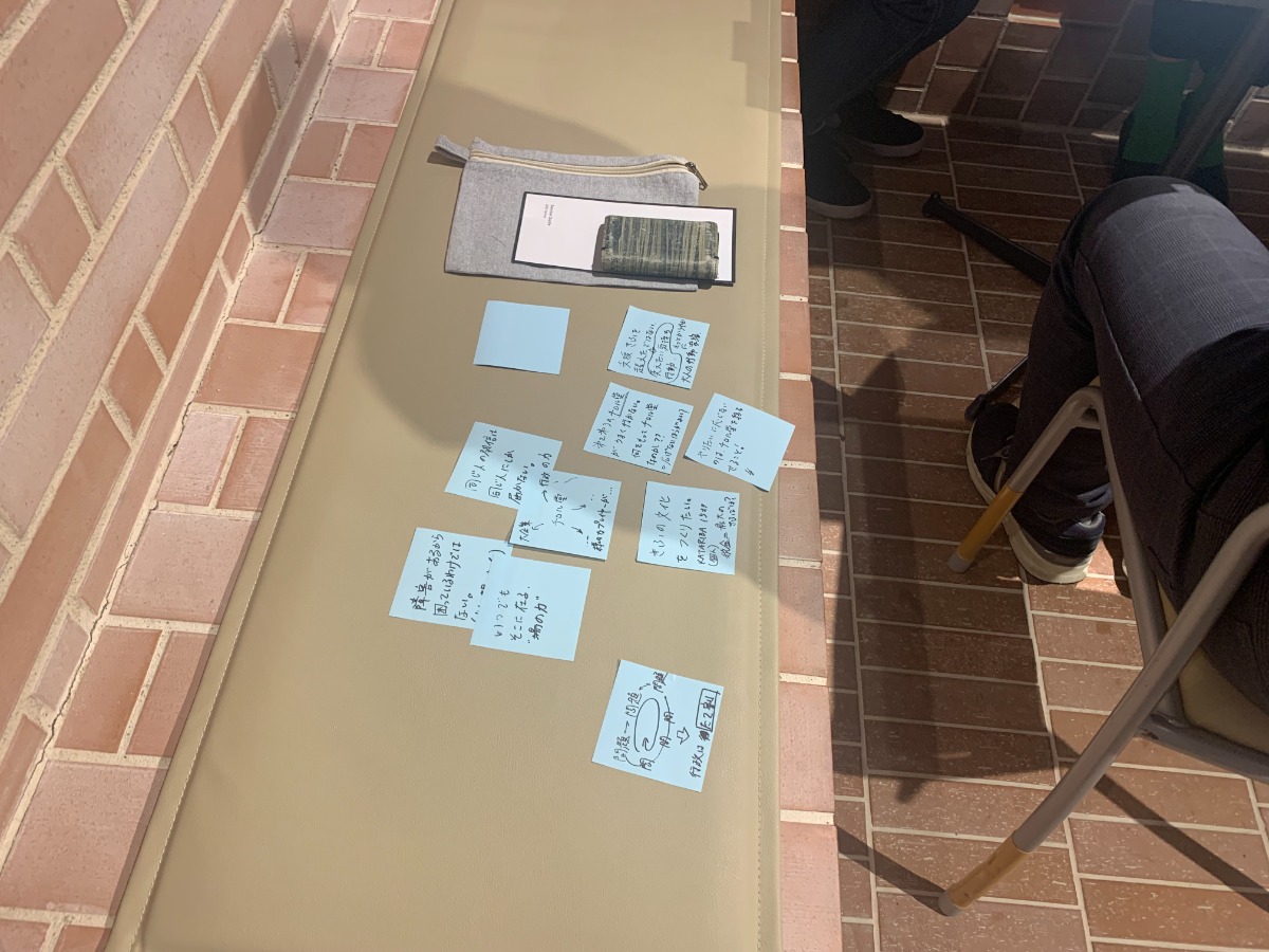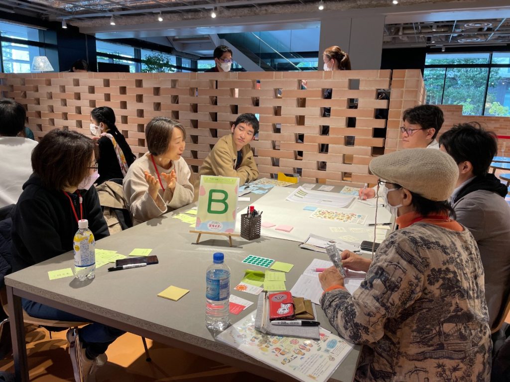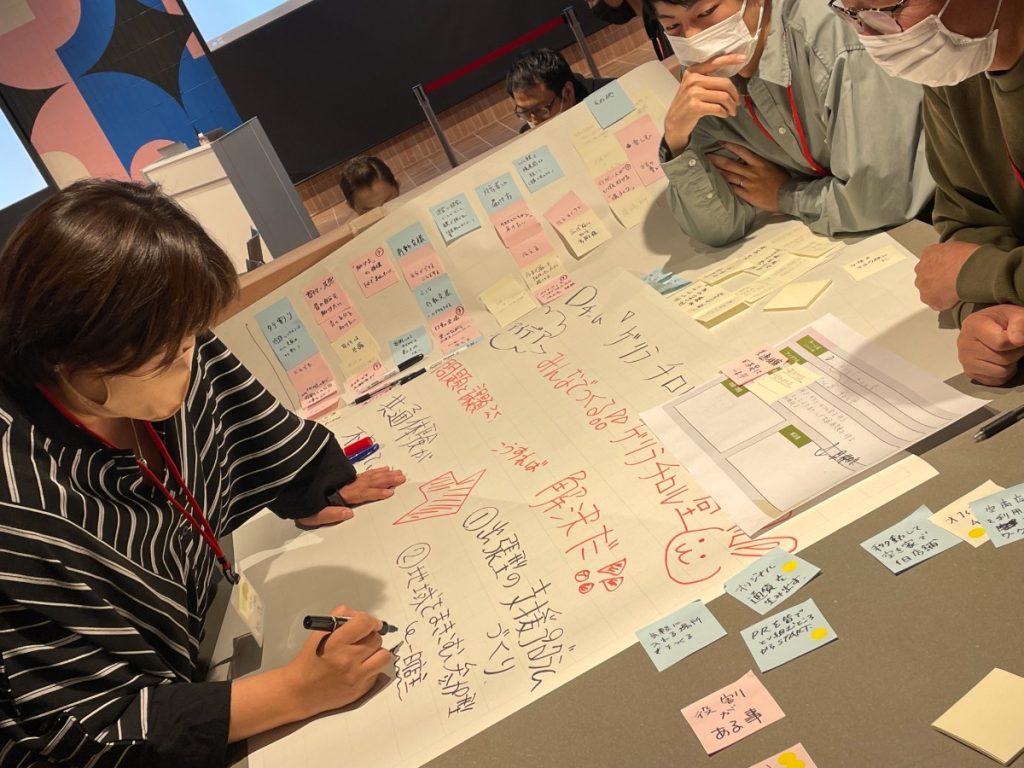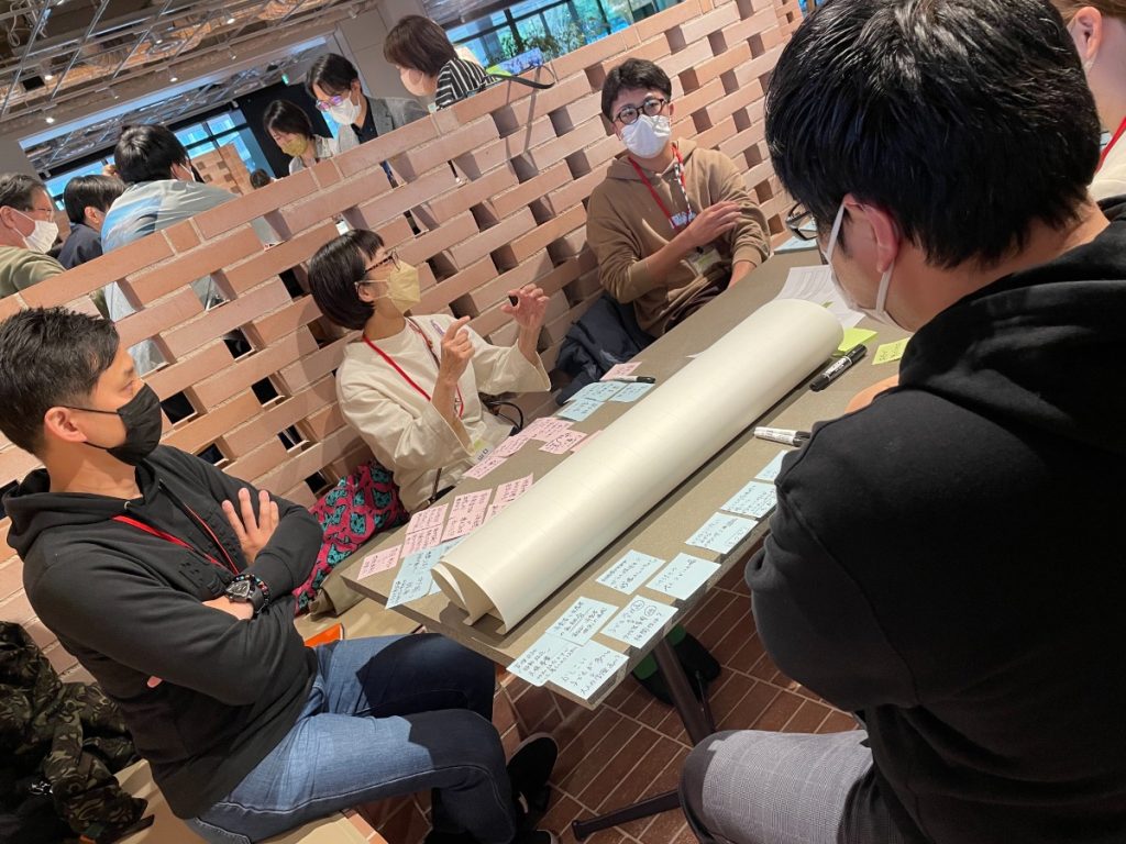 まずは同じチームのメンバーたちに自己紹介をし、ちょっとしたアイスブレイクからスタート。次に、先ほどの生駒市や『一般社団法人無限』のお話でメモしたことをみんなで出し合いました。