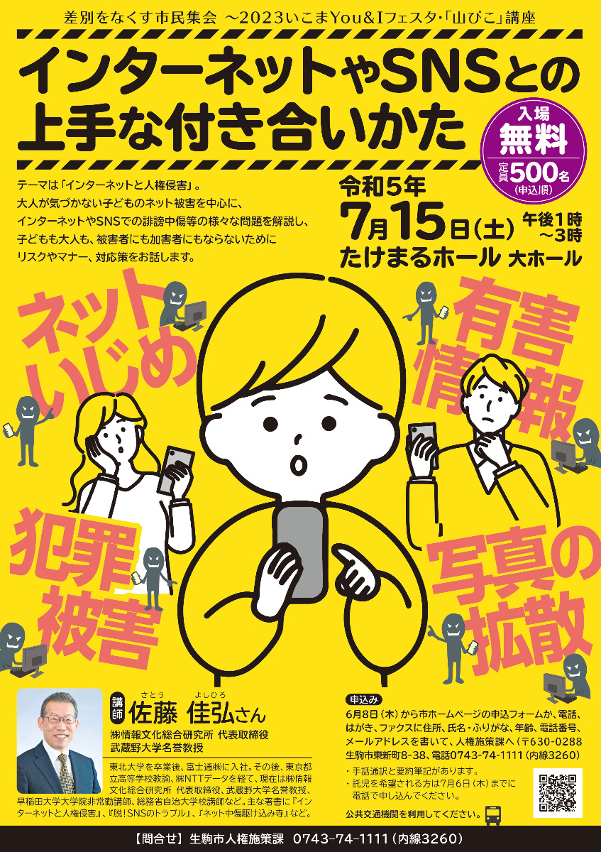 TOPイベント「インターネットやSNSとの上手な付き合いかた」~子どもも大人も、被害者にも加害者にもならないために~【奈良県生駒市】