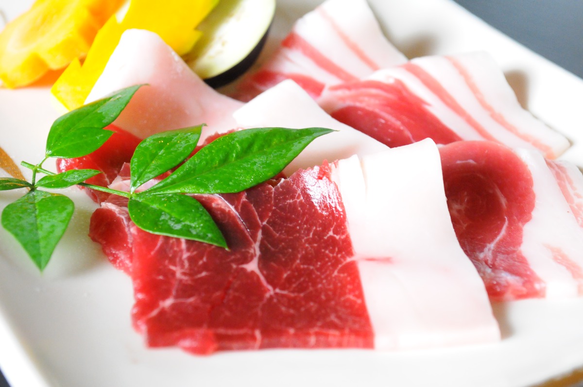 丹波篠山の猪肉を使った焼肉、そして奈良県川上村の鹿肉の竜田揚が楽しめるボリューム満点のジビエコース。