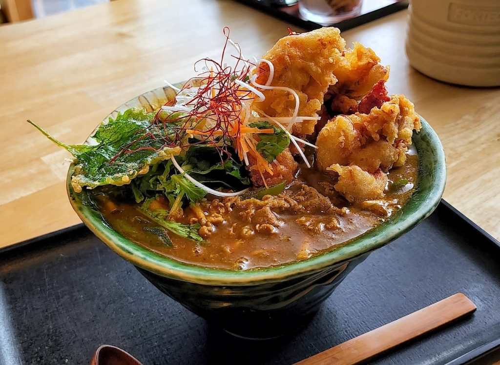 途中で鈴庵特製の専用ダレをかけると、さらにこのとり天が美味しくいただけるだけでなく、カレー出汁にタレの甘みがプラスされてまろやかに味変もできる。