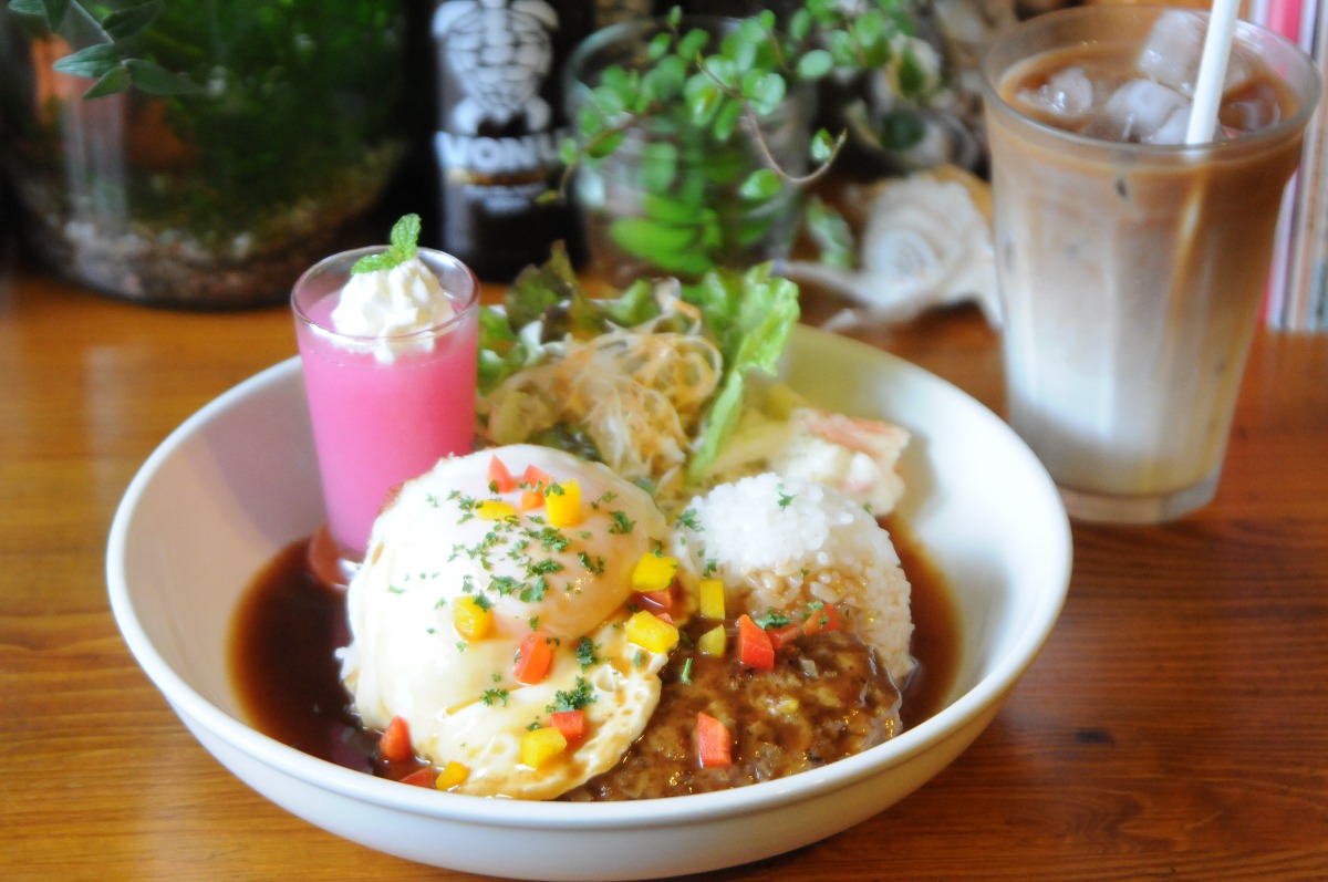 店主さんがフラダンス講師をされており、ロコモコなどのハワイアンメニューを味わえます。