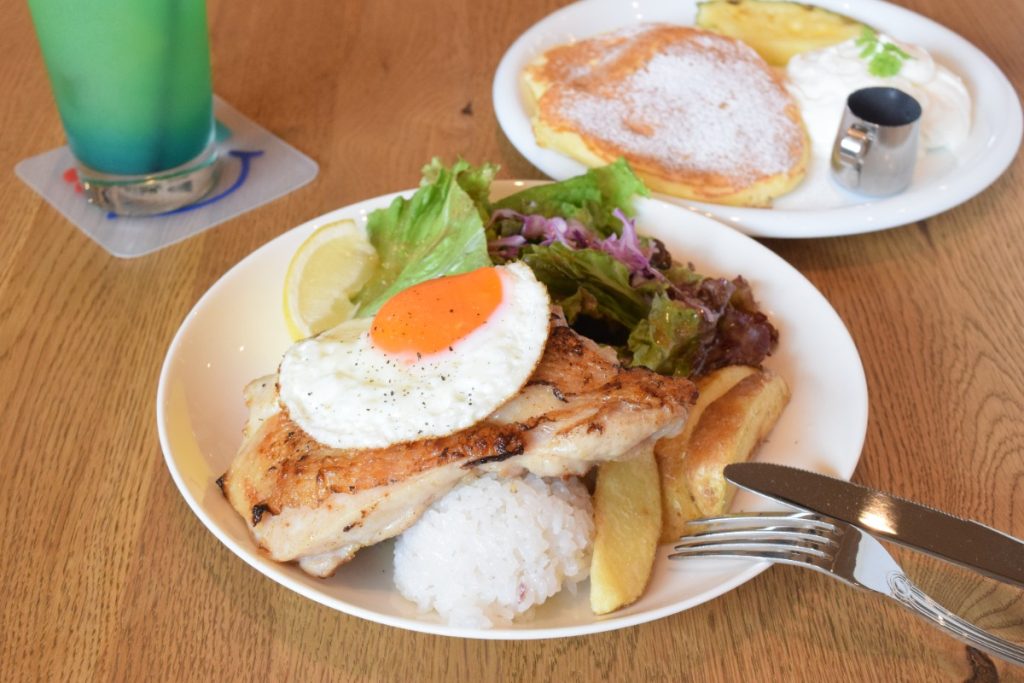 チキンステーキやパンケーキなどのメニューをいただけます。