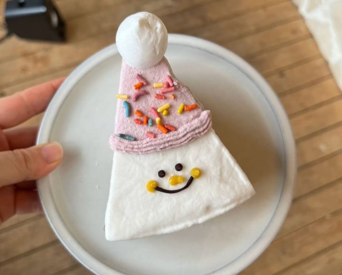 人気のVegan Chocolate Mousse Cakeに色んな表情のスノーマンがお出迎え。みんなキュートなお顔をしています。
