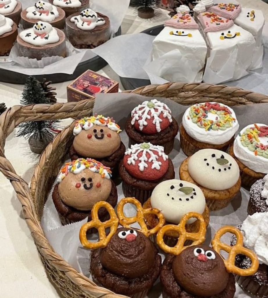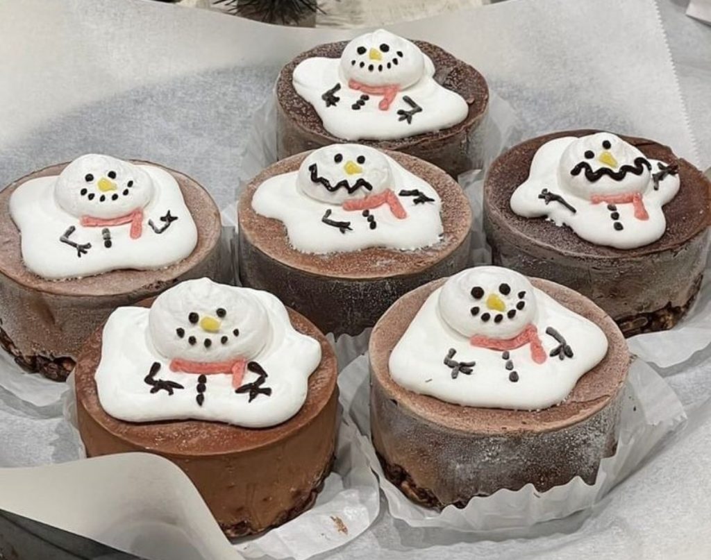 人気のVegan Chocolate Mousse Cakeに色んな表情のスノーマンがお出迎え。みんなキュートなお顔をしています。