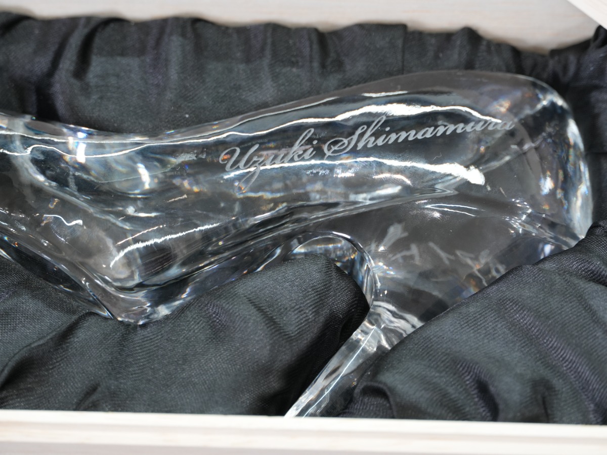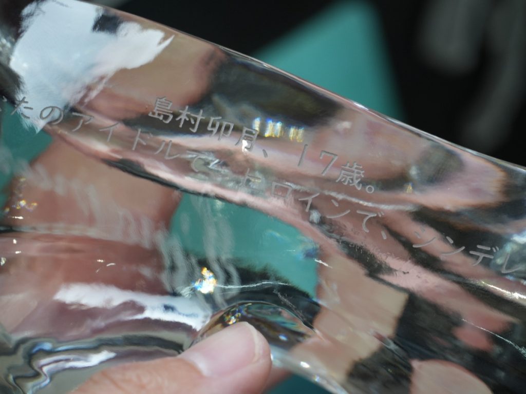 ガラスの靴の側面には筆記体でアイドルの名前を、反対側にはメッセージを入れることができる。