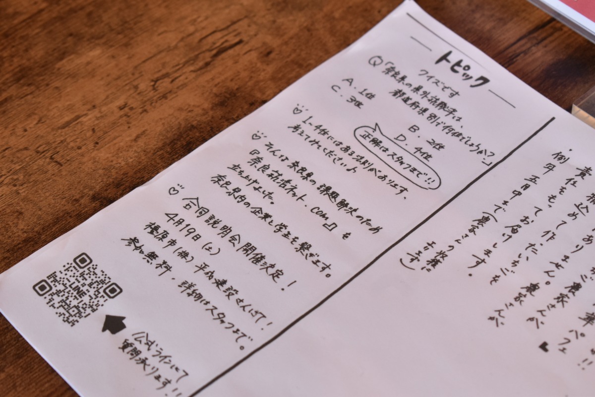 なんと地域の企業と学生を対象とした合同説明会の主催も。まさに地域密着店だ。