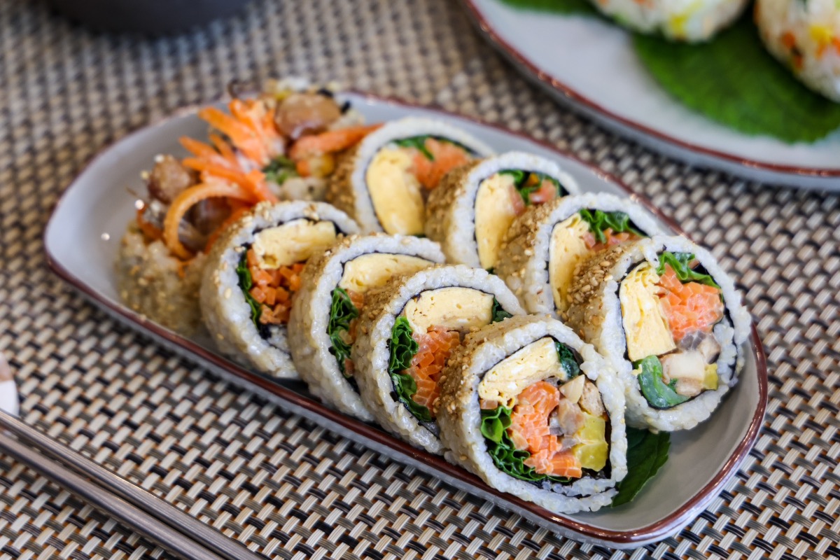 本場韓国のキンパは日本のキンパとは違い、ご飯よりも野菜などの具が多いことが特徴。