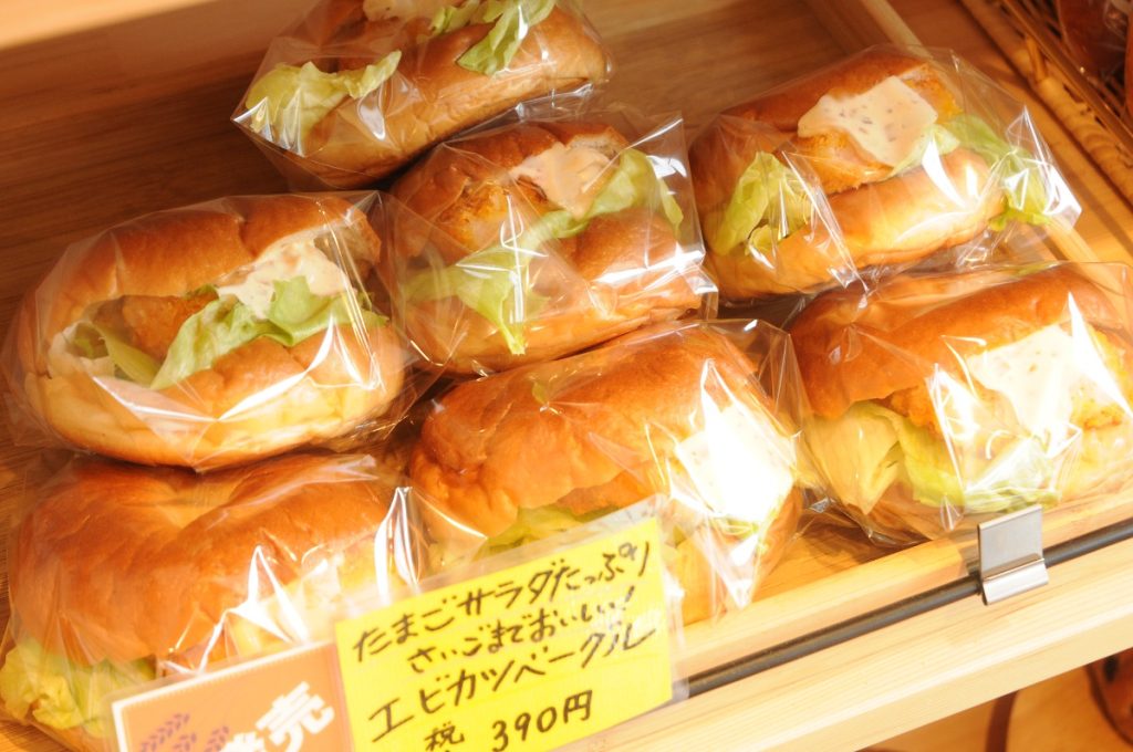 ブルーベリーベーグルなどの甘い系ベーグルだけでなく、惣菜系のベーグルも。