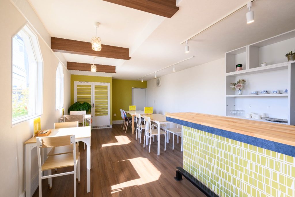 白と黄色を基調としたオシャレな店内デザイン
