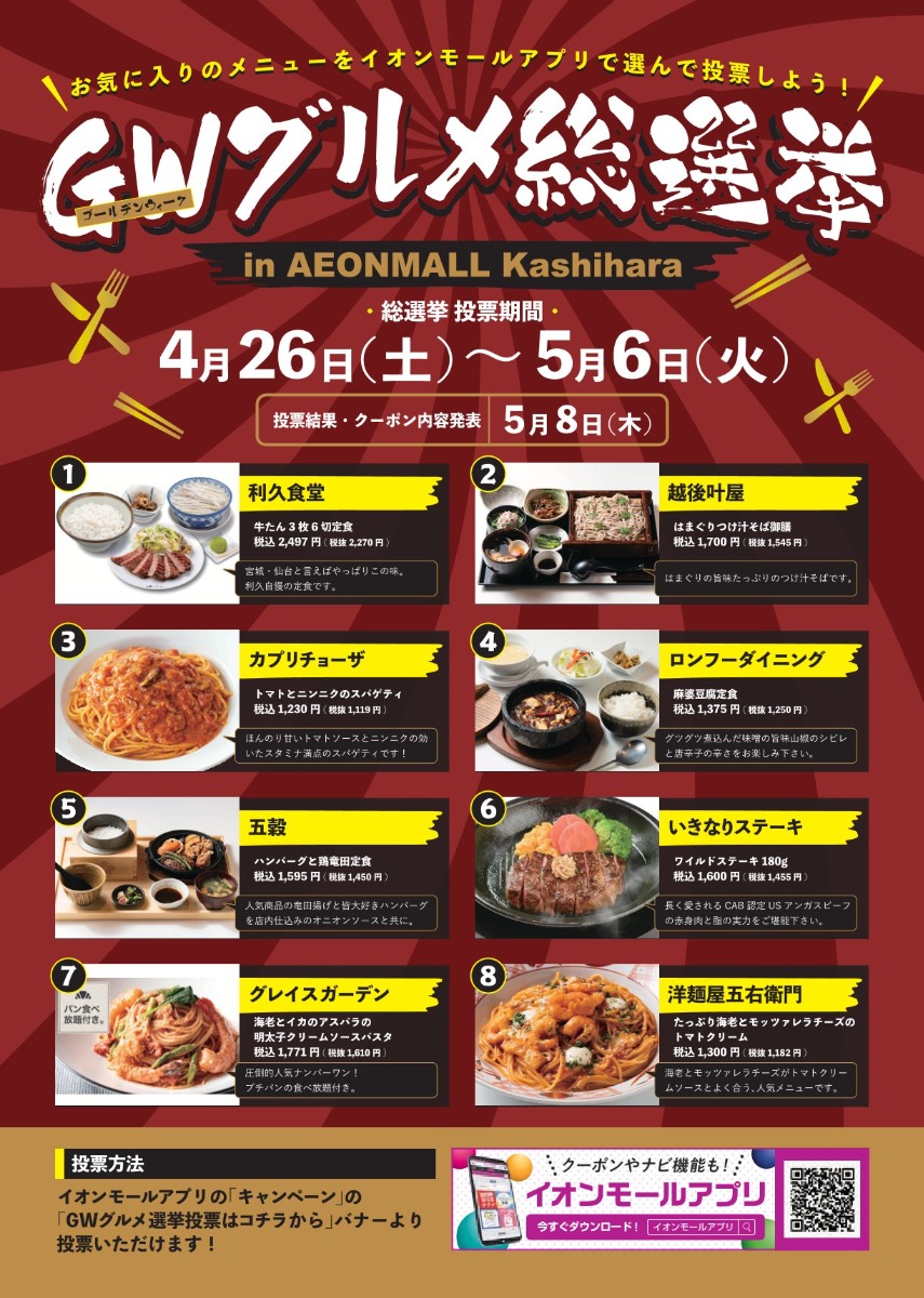 ゴールデンウィークに、イオンモール橿原で「GWグルメ総選挙」を開催!