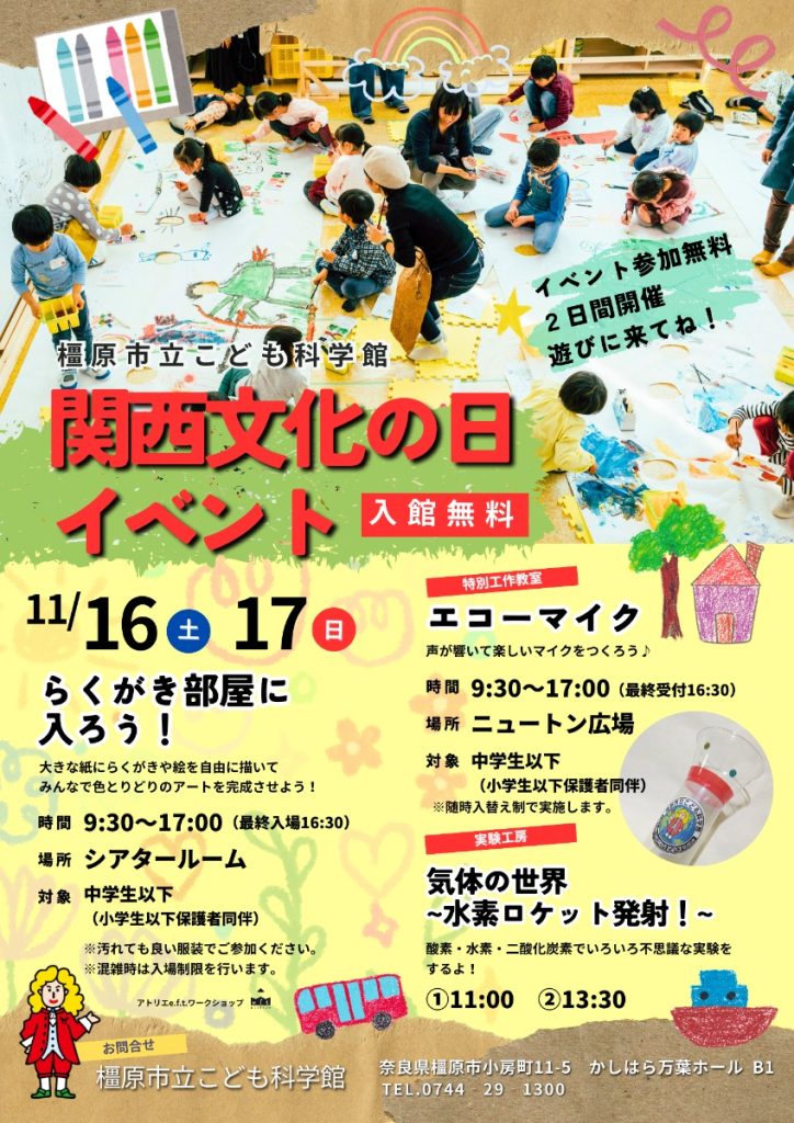 「こども科学館」にて参加無料の「関西文化の日イベント」開催!【橿原市】