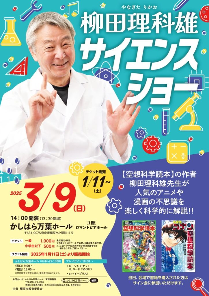 奈良県橿原市の『かしはら万葉ホール』にて、2025年3月9日(日)、「柳田理科雄 サイエンスショー」を開催!