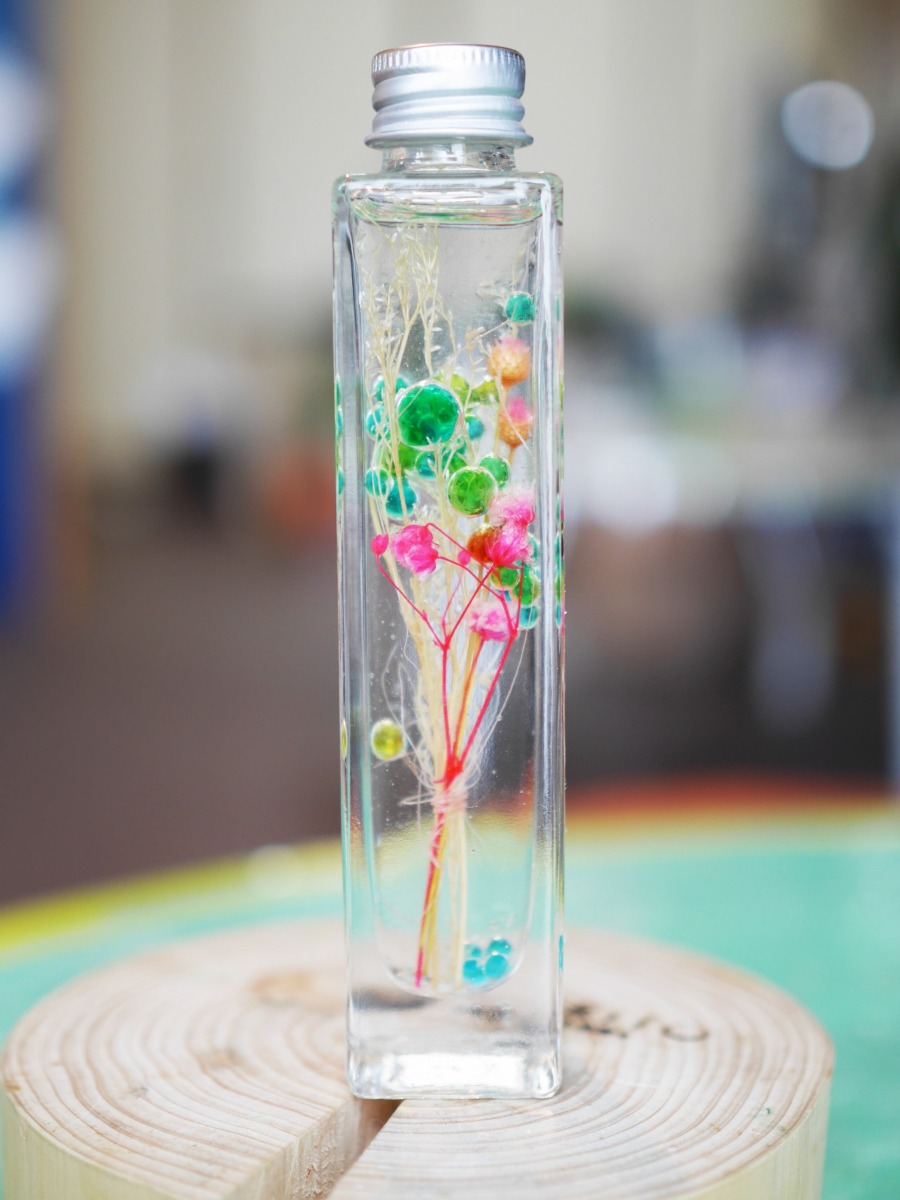 化学反応でつくるイクラボールをつかったすてきなハーバリウムを作ろう!