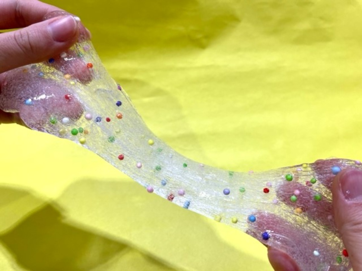 大人気!スライムの中にはカラフルな発泡ビーズ!不思議触感を楽しもう。