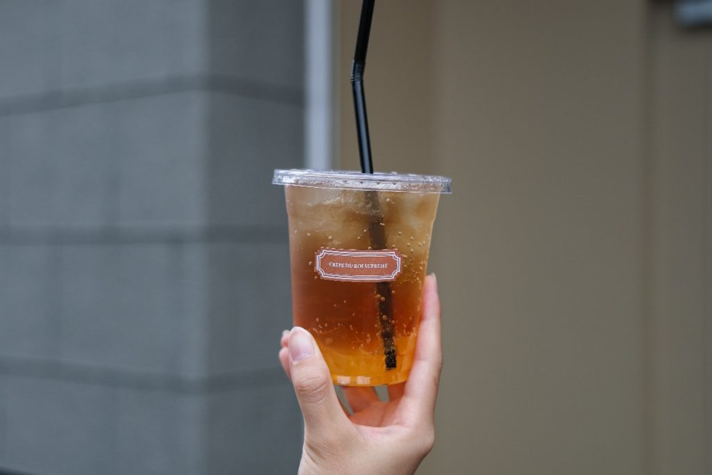 ゆずティーソーダは、柚子の爽やかな香りとほのかな苦みが心地よく広がり、クレープの甘さをすっきりとリセット。 紅茶の深みも加わって、デザートとの相性が抜群でした。
