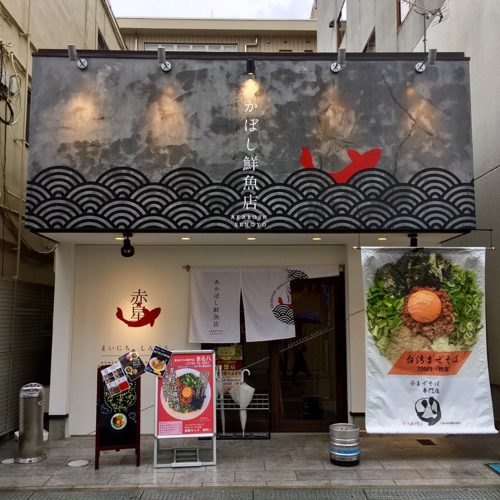 夜には『あかぼし鮮魚店』として新鮮魚介を中心とした居酒屋に変身!