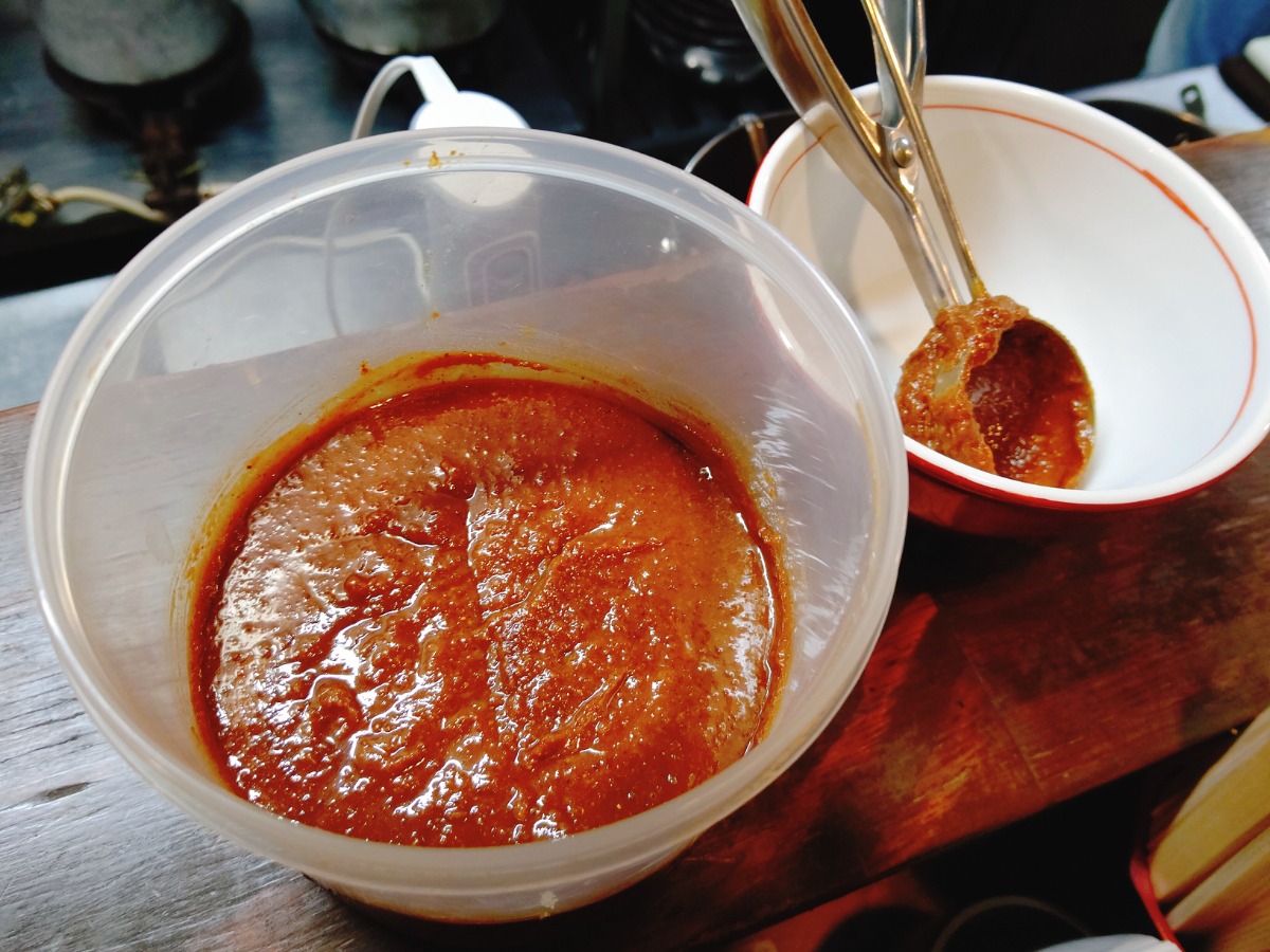 4種類の味噌を中心に17種類もの素材を合わせた特製の味噌ダレ。なかでも無添加の赤味噌が旨味のポイントになっています。