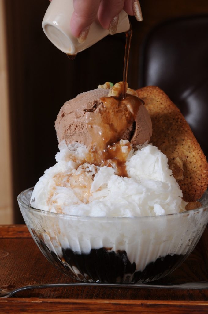 そのふわふわ氷にラムがきいた、ちょっぴり大人なアイスクリームをトッピング。