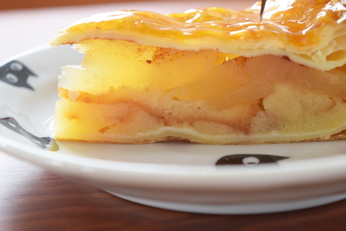 スポンジ生地とりんごのプレザードは食感がたまらない。