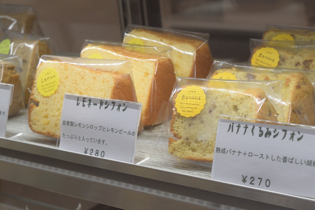 シフォンケーキは期間限定を含め常時8種類がショーケースを彩る。
