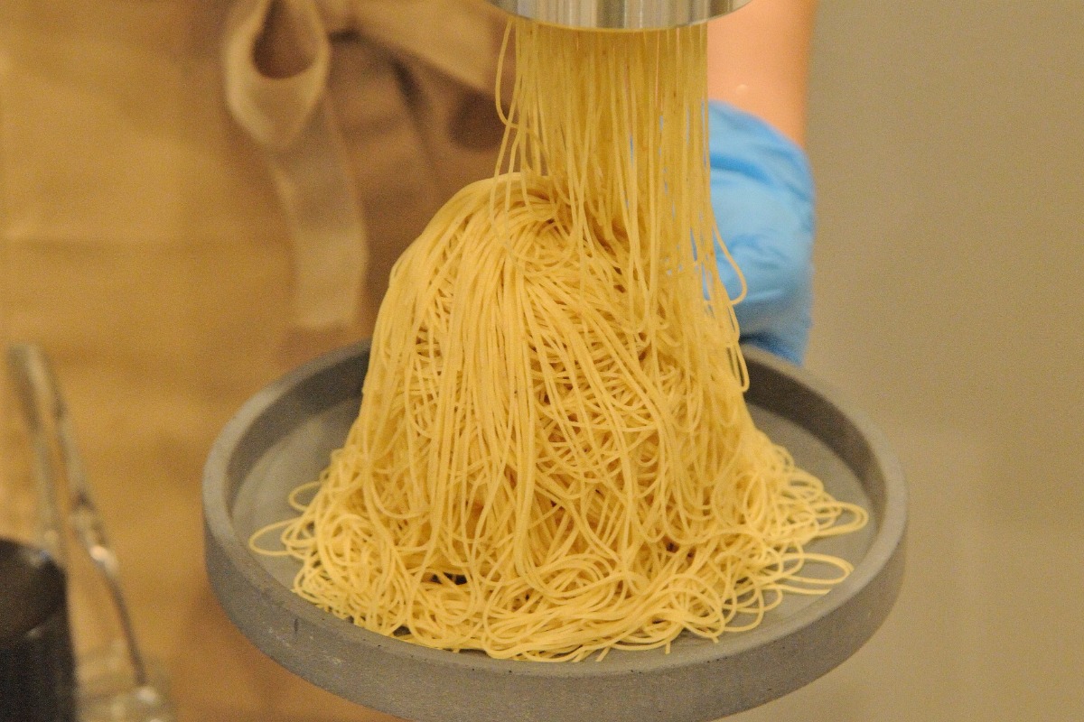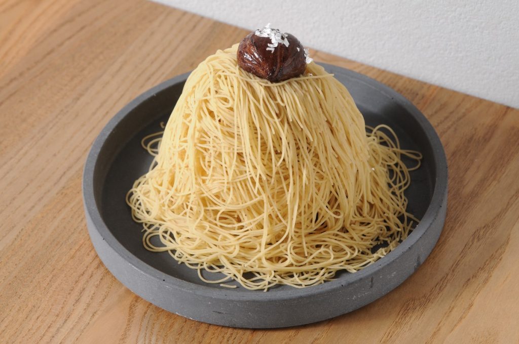 モンブランをオーダーすると、目の前で実演生絞りしてくれるのが、このお店の特徴。
