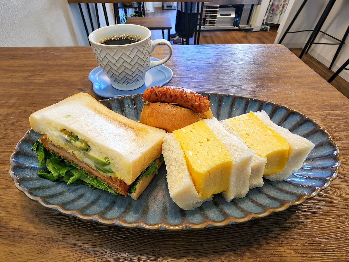 今回はイートインスペースでおすすめされた、だしまきプラス(だしまきサンド&日替わりサンド)とぷりぷりエビカツサンドを美味しいコーヒーと共にいただきました!!⁡
