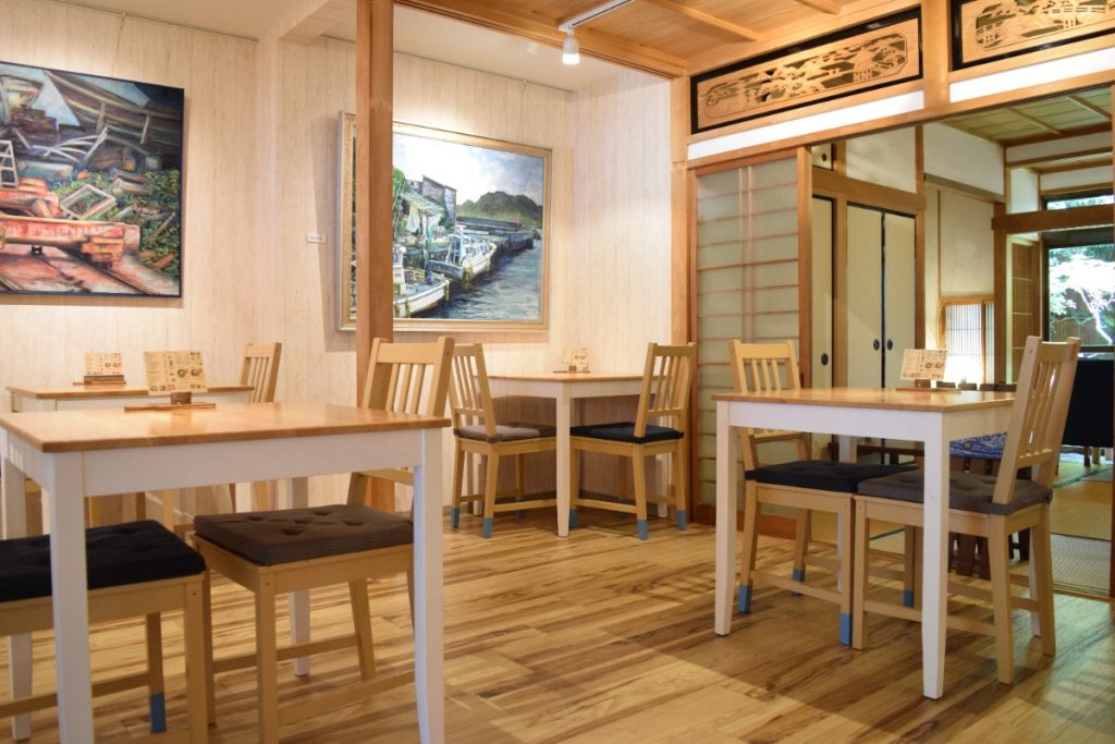 築80年以上の古民家をリノベーションしており、趣深い店内には至るところに絵画が飾られている。