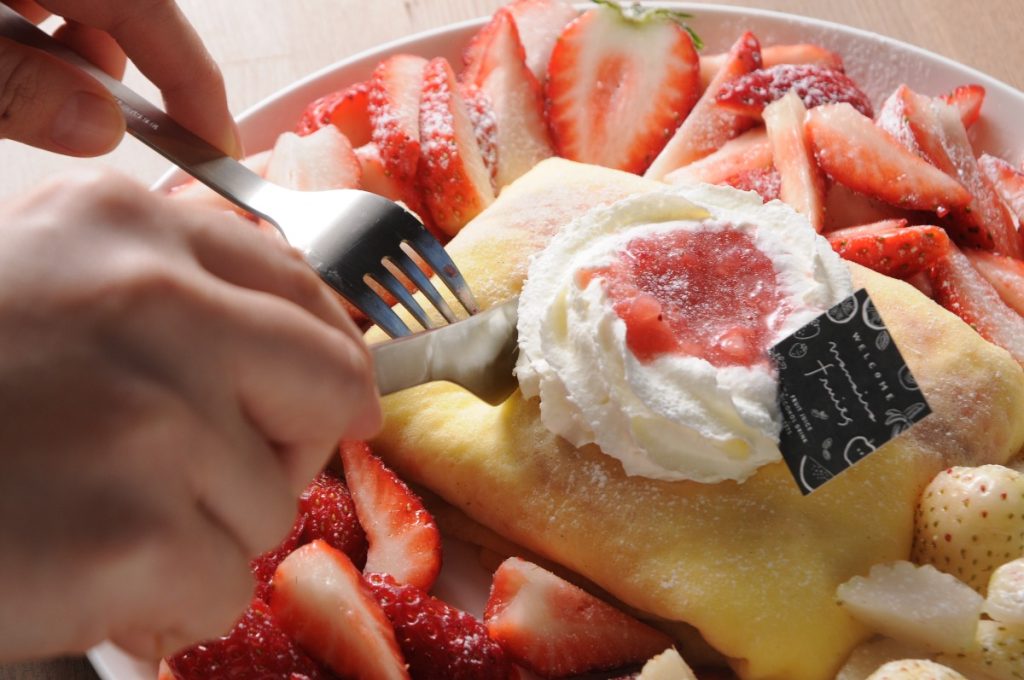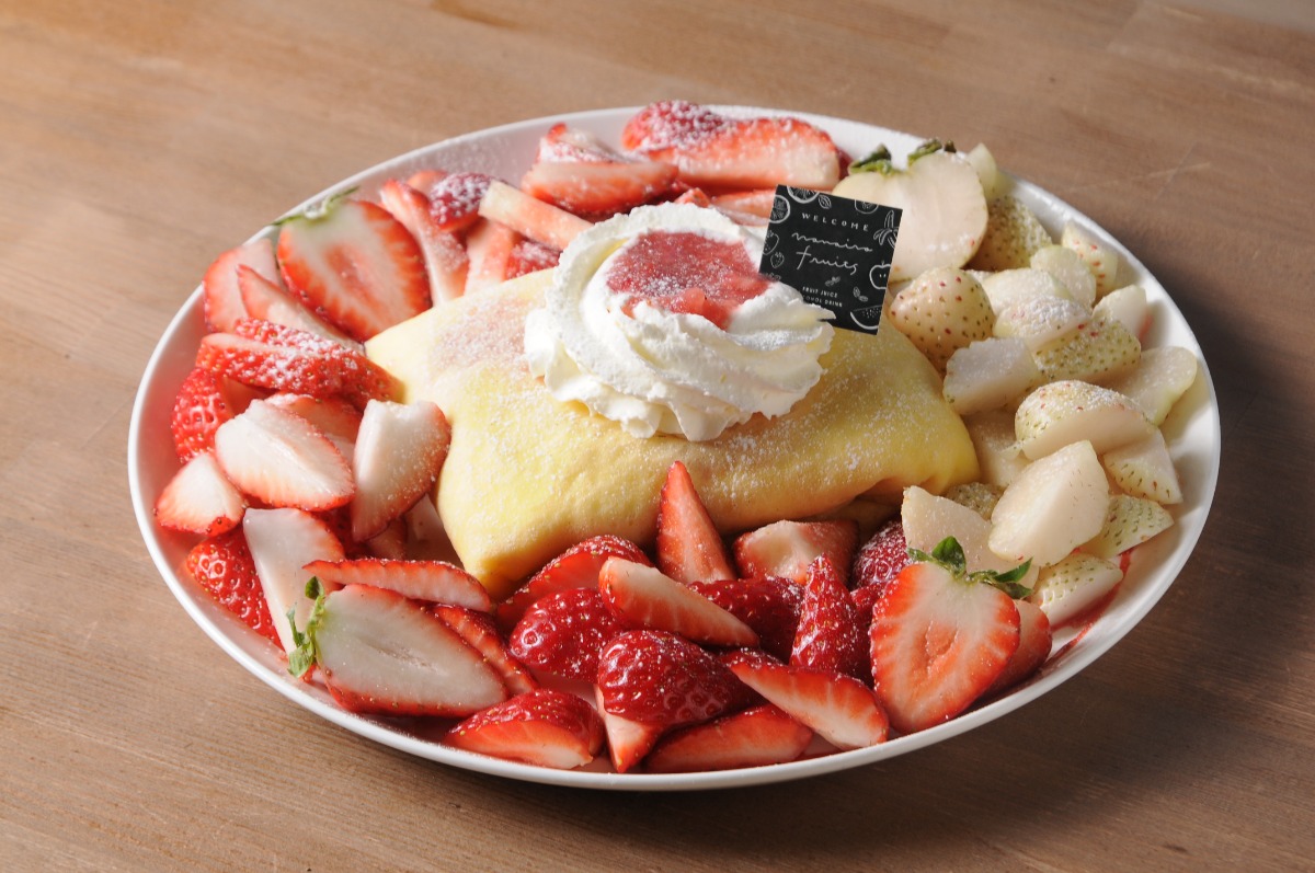 約1.5パックものいちごを、クレープを囲むようにして盛り付けた姿は小さないちご畑のよう!