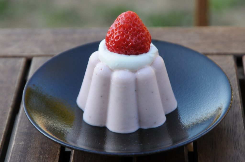 淡いピンク色が可愛らしい、お皿にちょこんと乗るババロア。