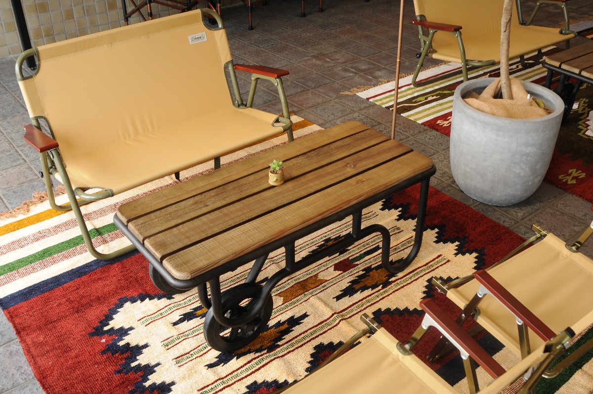 アウトドアグッズを用いたインテリアで、ついつい長居してしまいそうな居心地。