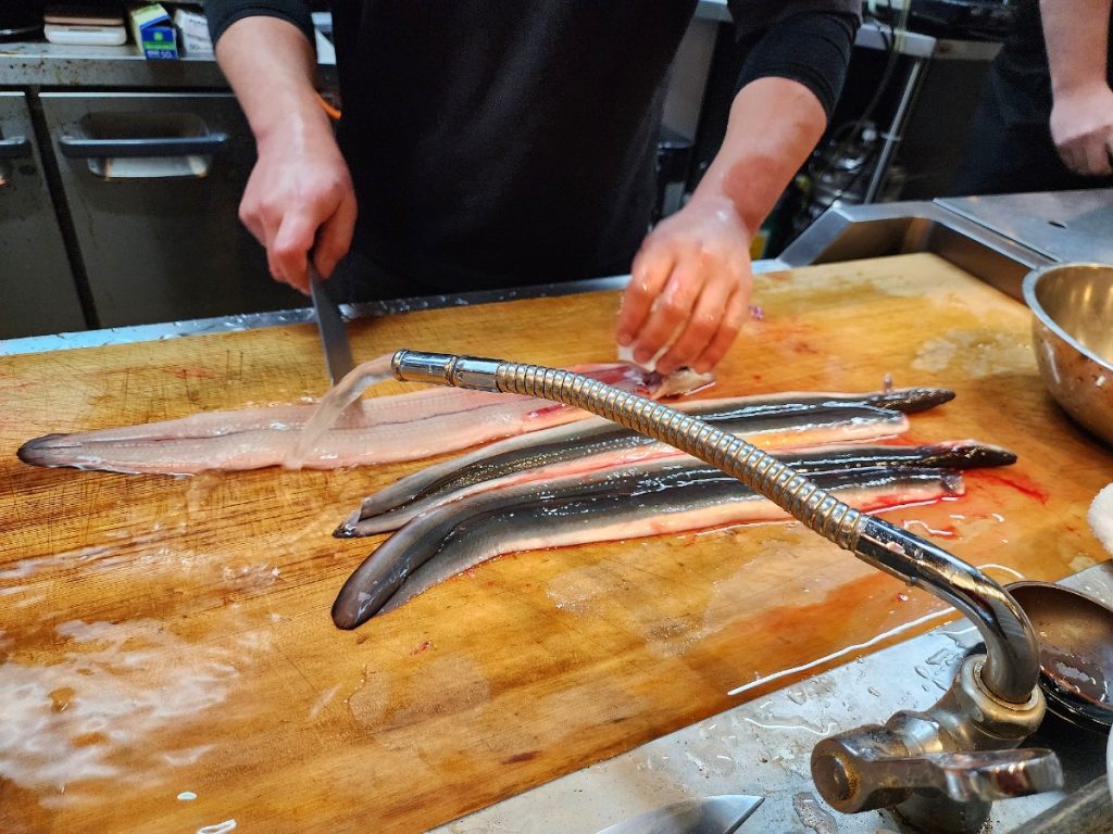 「ご希望で食べやすく切ります」とのことだったので、せっかくの鰻を美味しく上品にいただくため切っていただきました(笑)