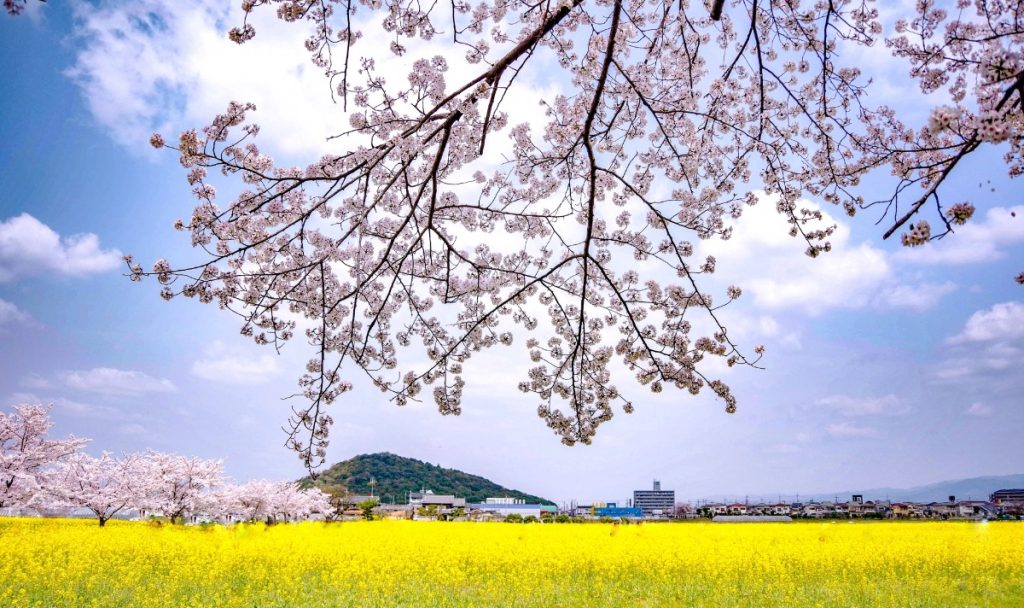 唯一無二の絶景!奈良県橿原市の「藤原宮跡」の咲き誇る桜と250万本もの菜の花の共演