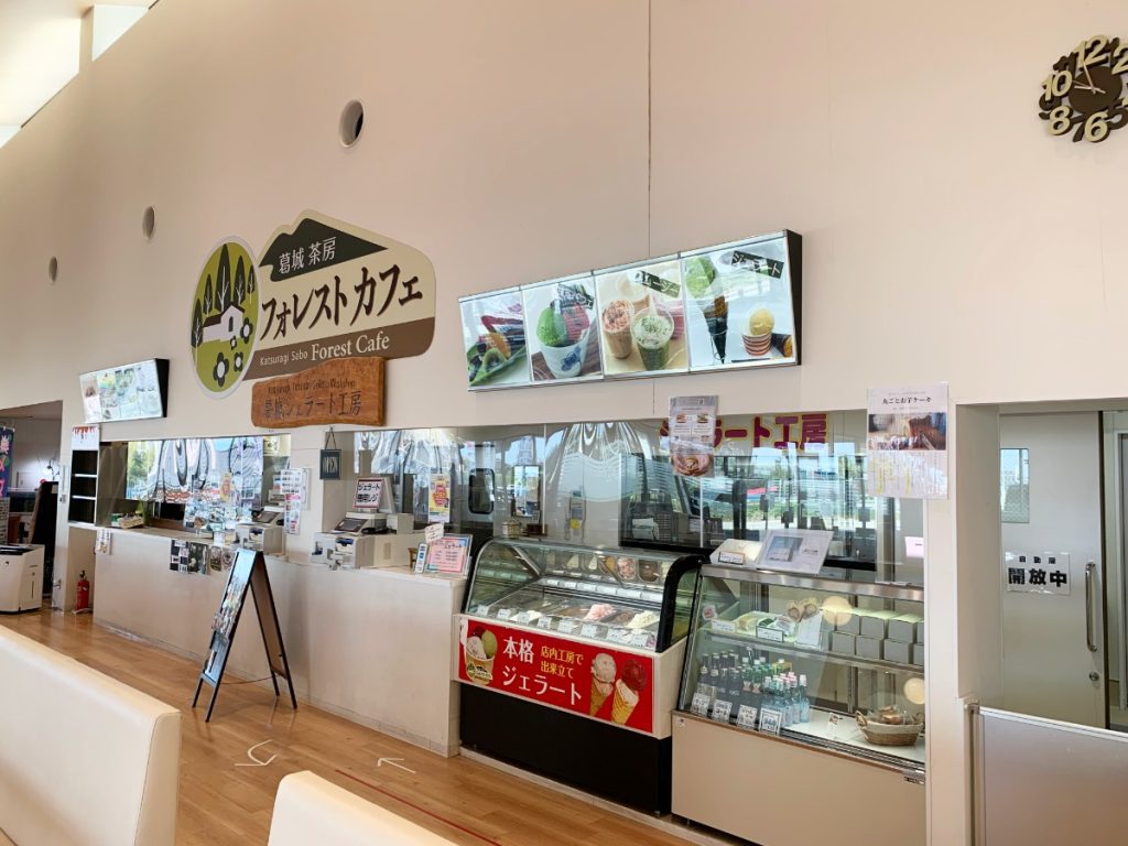 フードコートでは、桑の葉ソフトクリームや瓦そば、手作りパン、ジェラートなども楽しめる。