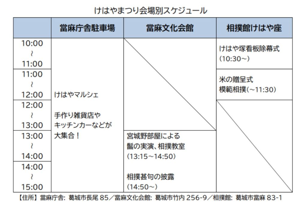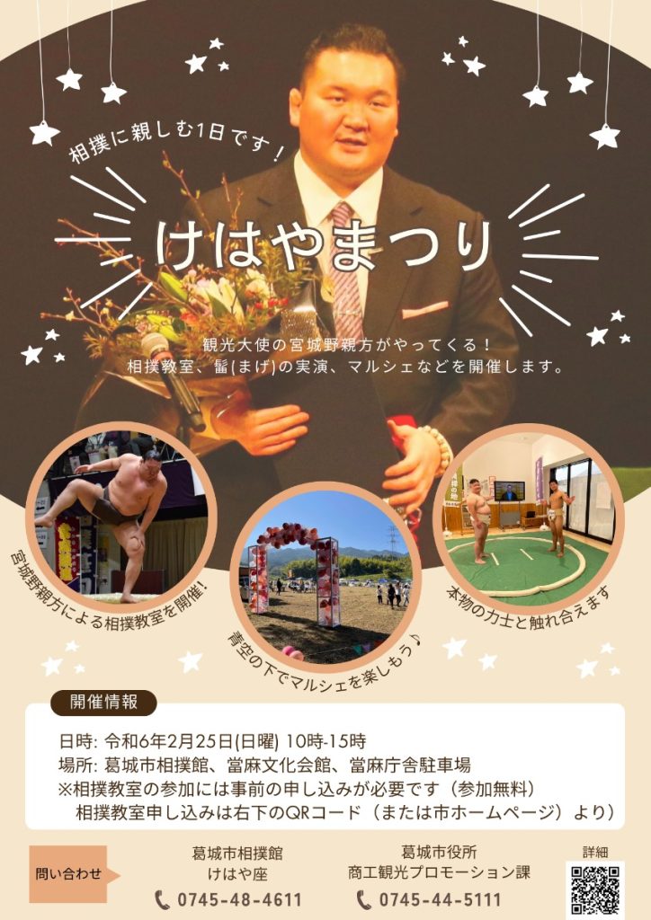 2024年2月25日(日)に奈良県葛城市で相撲を1日楽しむイベント「けはやまつり」が行われる。