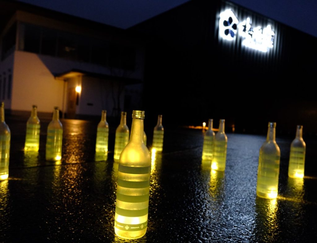 酒瓶を使ったイルミネーションが、会場を盛り上げる。酒蔵ならではの催しだ。