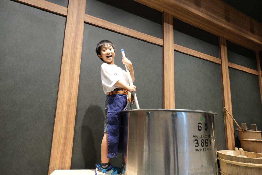 実際の日本酒造りに使用する道具に触れたり、普段は蔵人しか入ることのできない酒蔵の内部での作業を子供たちに体験してもらうイベントとなっている。