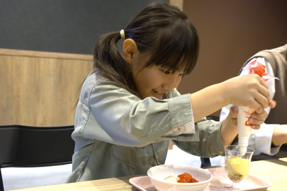 親から離れて、子どもだけで行う蔵見学や、親から子どもに向けて送るメッセージカード付きのプレゼント贈呈、そして絆を深める親子で一緒にいちごパフェづくりと楽しみが盛りだくさん!