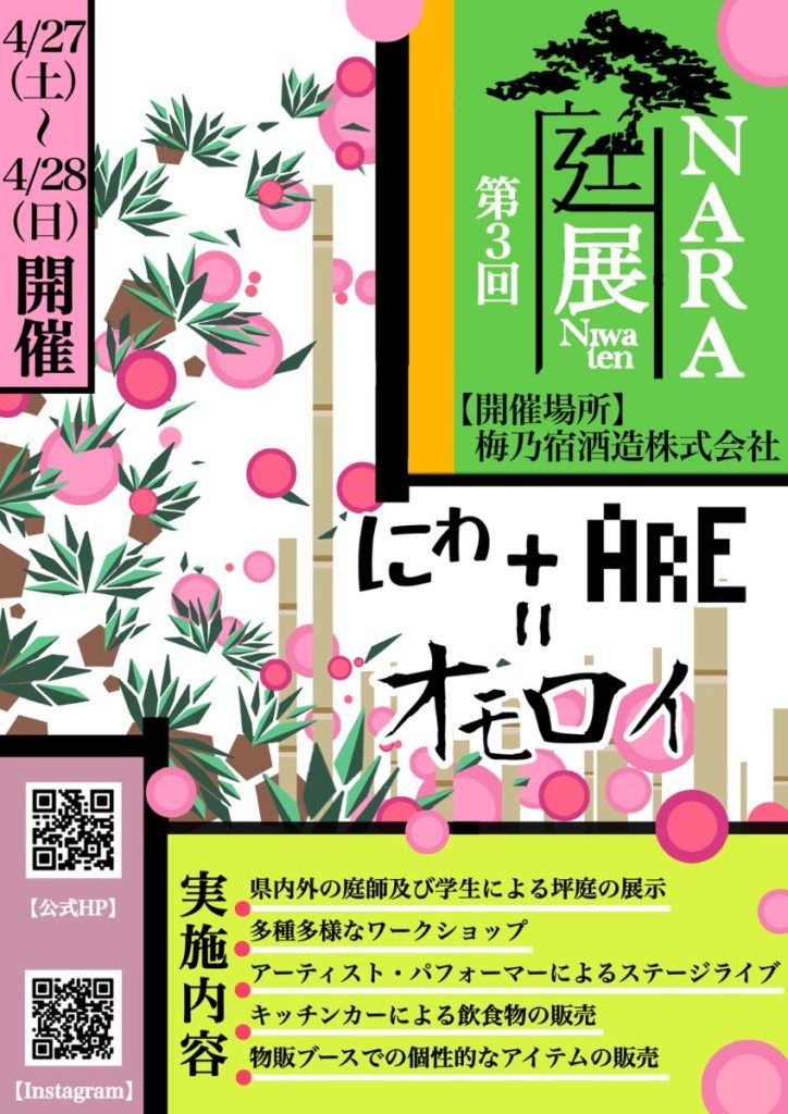 4月27日(土)、28日(日)の両日、梅乃宿酒造の敷地内において第3回『庭展なら』が開催される。