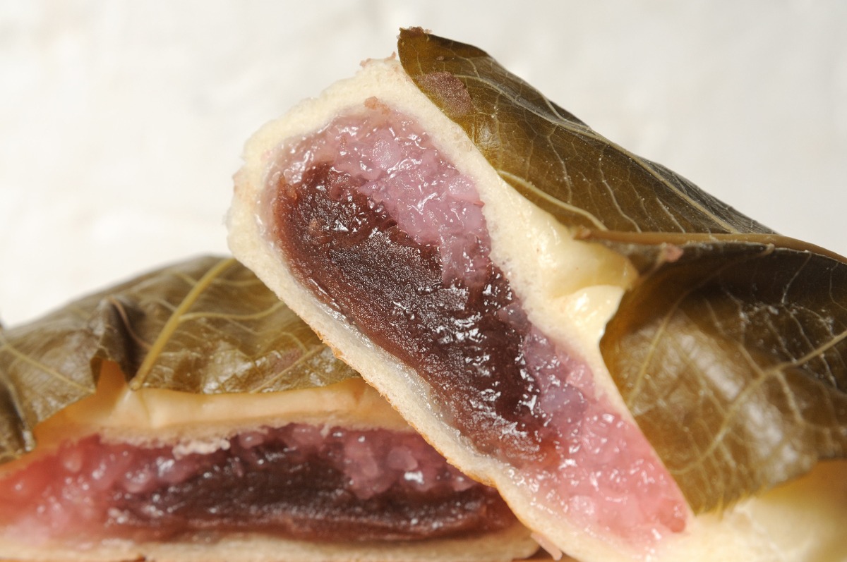 「桜もちパン」は、割ってびっくり中には桜もちが!