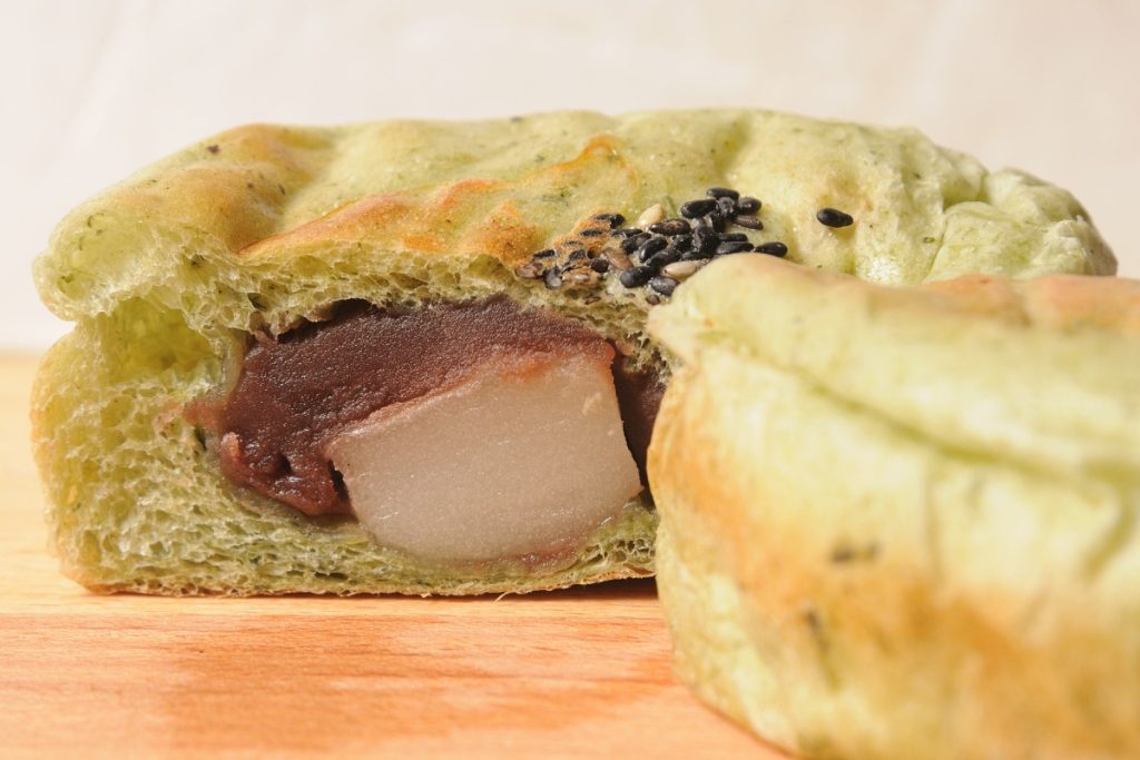 春になり、緑が芽吹く奈良の山々を想起させるパンの中には、ずっしりあんこともちもち白玉が!