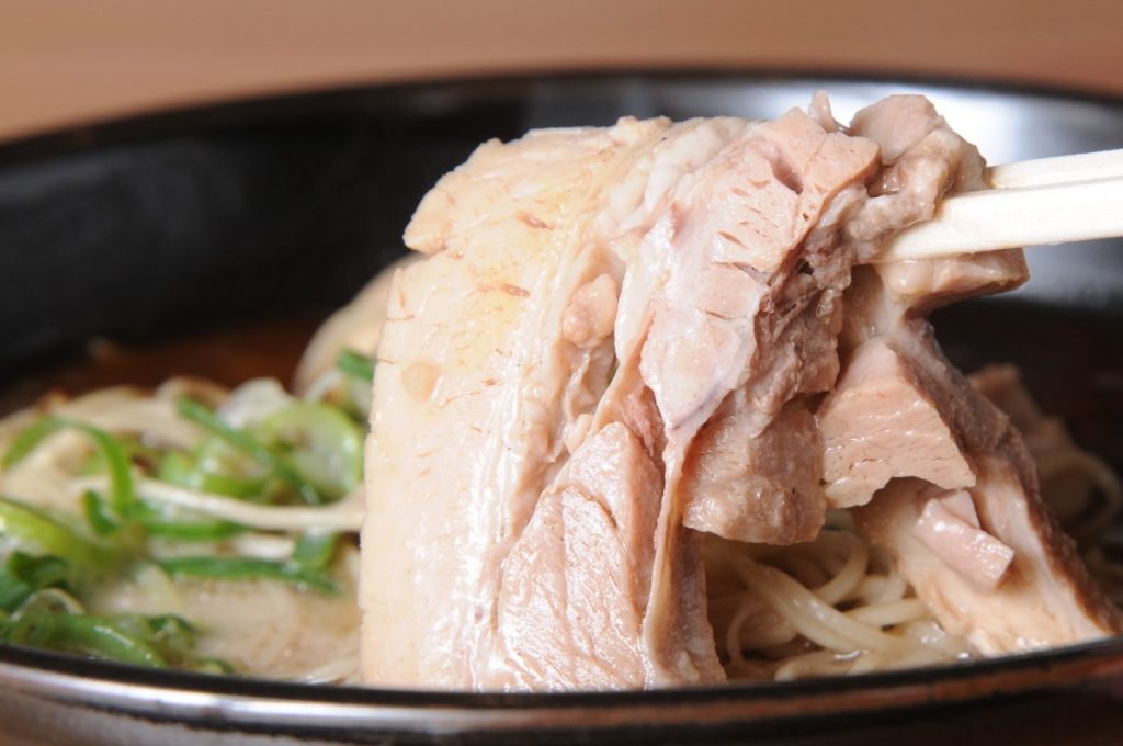 チャーシューは分厚く、口に入れるとほろほろと砕けていく。