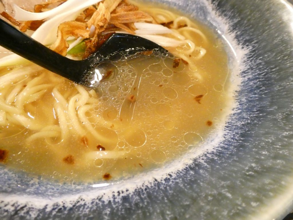 鰹の一番出汁や帆立などを使った塩ダレが味を引き締めるポイントで、スープに一体感をもたらしています。