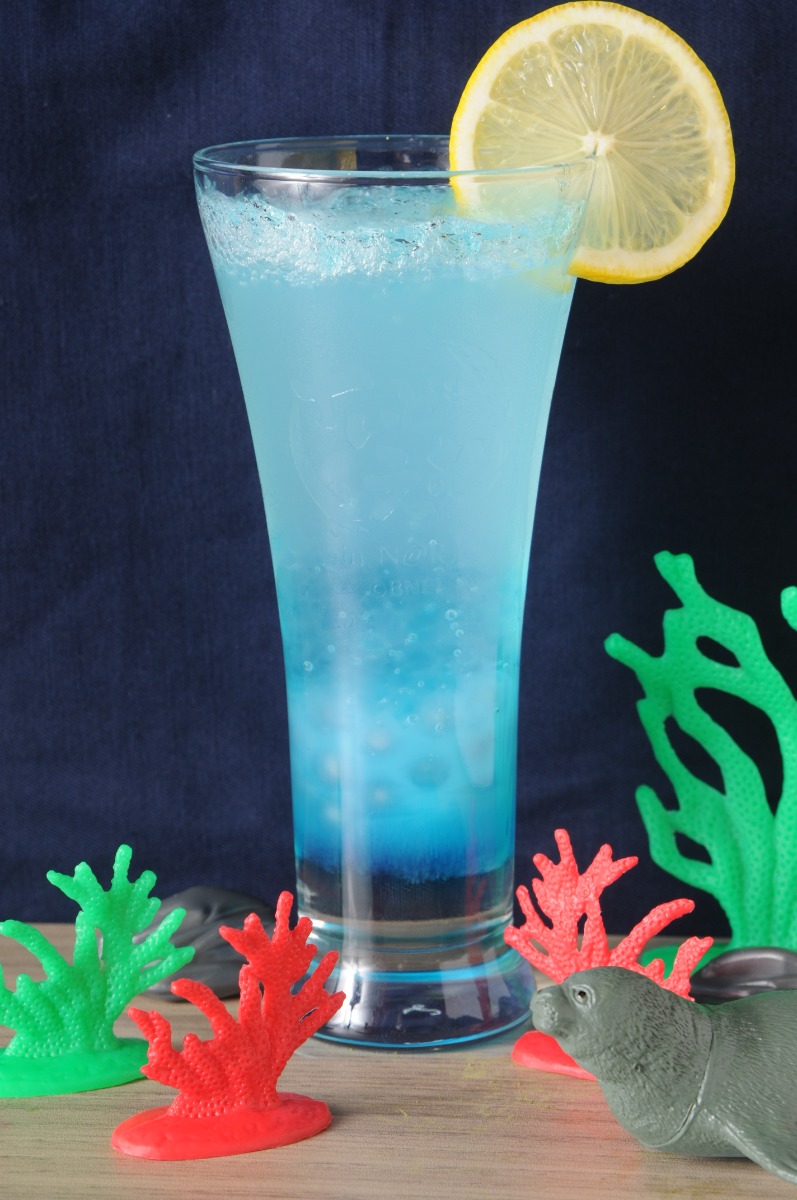 元海洋学者(助教)の古論 クリスさんをイメージしたドリンク。 ブルーハワイにカルピスを加え、炭酸で割った見た目も味も爽やか。 トッピングのゼリーは、流氷を表現。 奈良県にはない海が、ここに誕生!(?)
