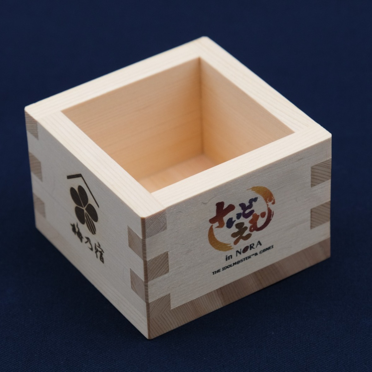 特別ルーム※でご注文の際は「アイドルマスター SideM in N@RA」ロゴ入りグラスにてご用意。 蔵見学に参加しなくても、直営店カウンターではプラスチックカップにて購入できる。 ※特別ルームは蔵見学参加者のみ入室ができます③コラボロゴ入り木枡の販売