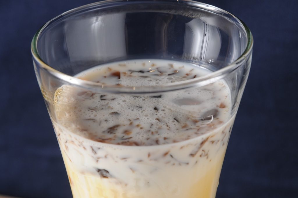 元清掃員アイドル 葛之葉 雨彦さんをイメージしたミルクティー。 黒みつシロップにミルクを加えており、さらに紅茶ゼリーをトッピング。 黒みつのこっくりとした甘さとのバランスをとるために、紅茶の強い風味を感じられるゼリーになっている。